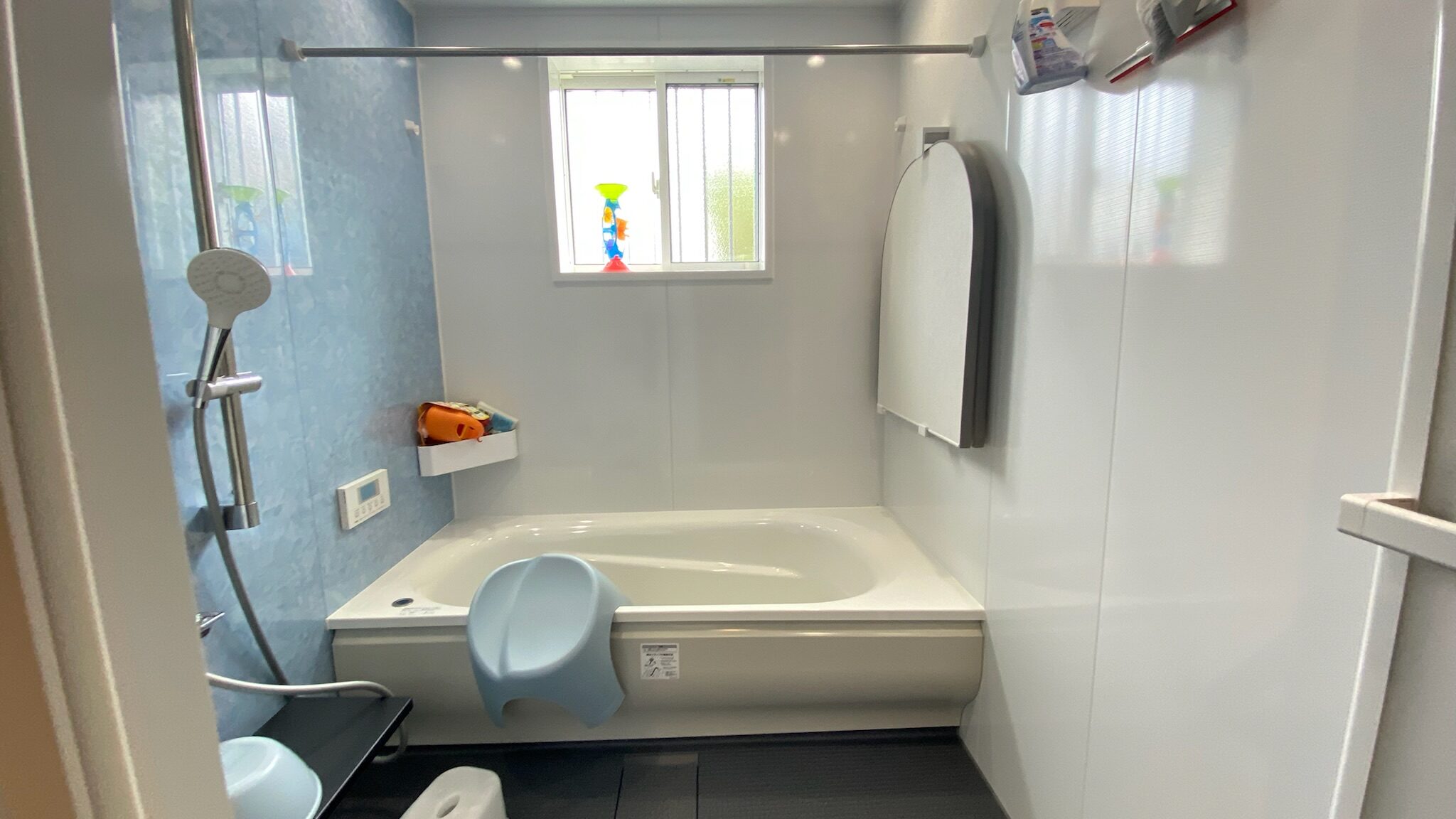 洗い場が広いと、子供の頭や体を洗ってあげたりしやすいです。